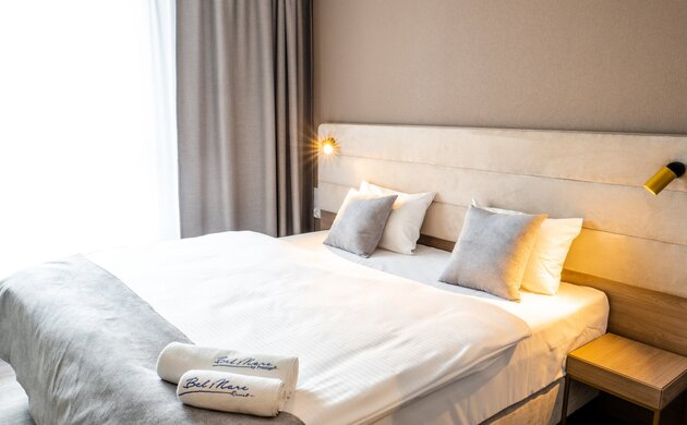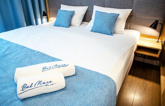 Bel Mare Resort w połączeniu z Aqua Resort tworzą największa baza noclegowa w Polsce! Kompleks wypoczynkowy stworzony z myślą o wypoczywających w nim rodzinach z dziećmi. Bel Mare Resort to pięcioletni obiekt świadczący usługi hotelowe oraz gastronomiczne na najwyższym poziomie.Obiekt oferuje luksusowe apartamenty urządzone w ultranowoczesnym stylu z częścią wypoczynkową z aneksem kuchennym, wygodną sofą, oddzielną sypialnią i łazienką oraz balkonem lub wyjście na patio.Resort oferuje morze atrakcji: zewnętrzne strefy zabaw w tym park wodny, konstrukcje wspinaczkowe, salę zabaw o powierzchni 400m2., dwupoziomową salę gier zręcznościowych oraz dwie sale gamingowe.Dodatkowe udogodnienia dla Gości to restauracje, bary, kryty basen z brodzikiem dla dzieci, sauna sucha, prywatne plaże (zlokalizowane zaledwie 450m. od Resortu).