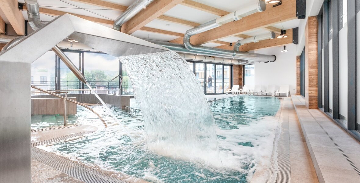 Po chwili relaksu w saunie czy basenie, możliwość bezpośredniego wyjścia na deck tarasowy z łóżkiem oraz leżakiem plażowym.