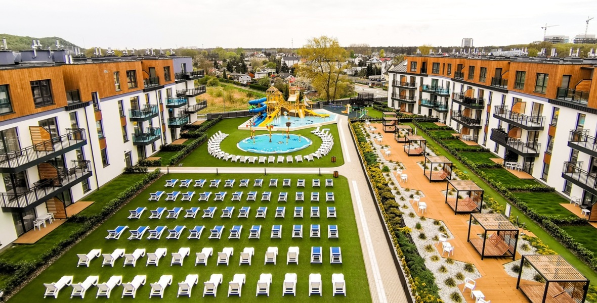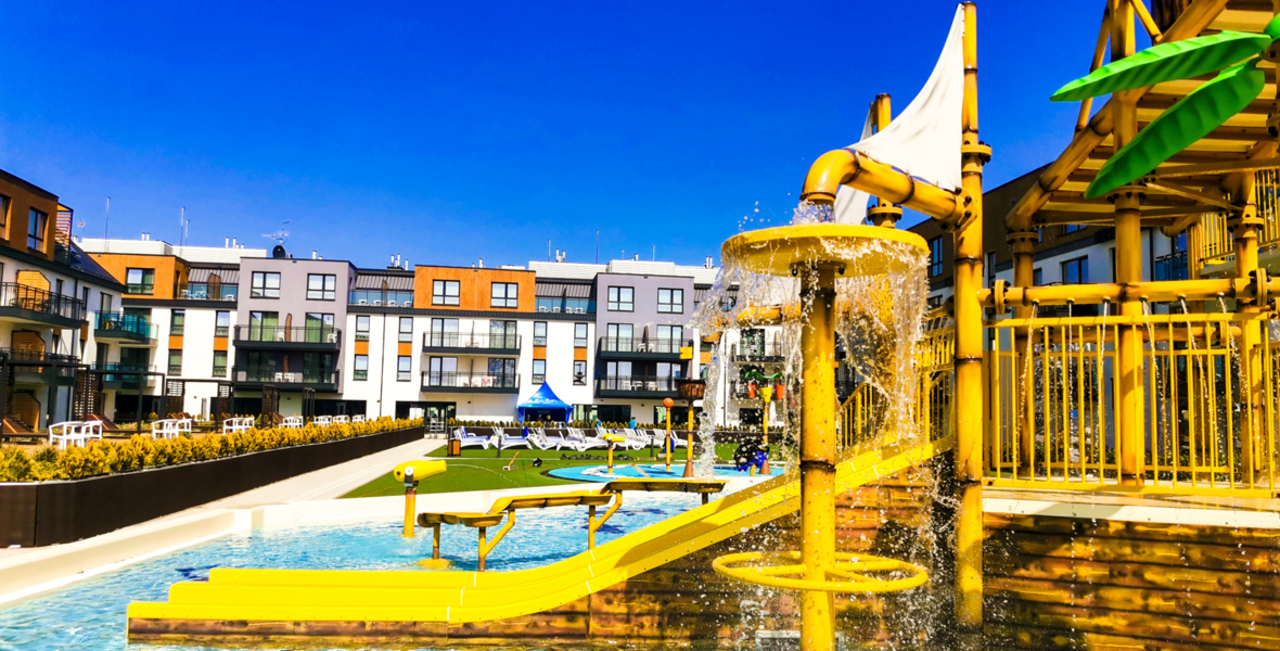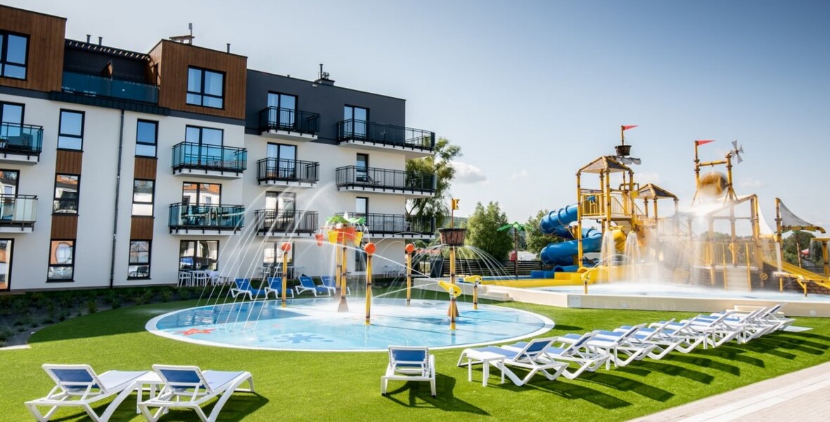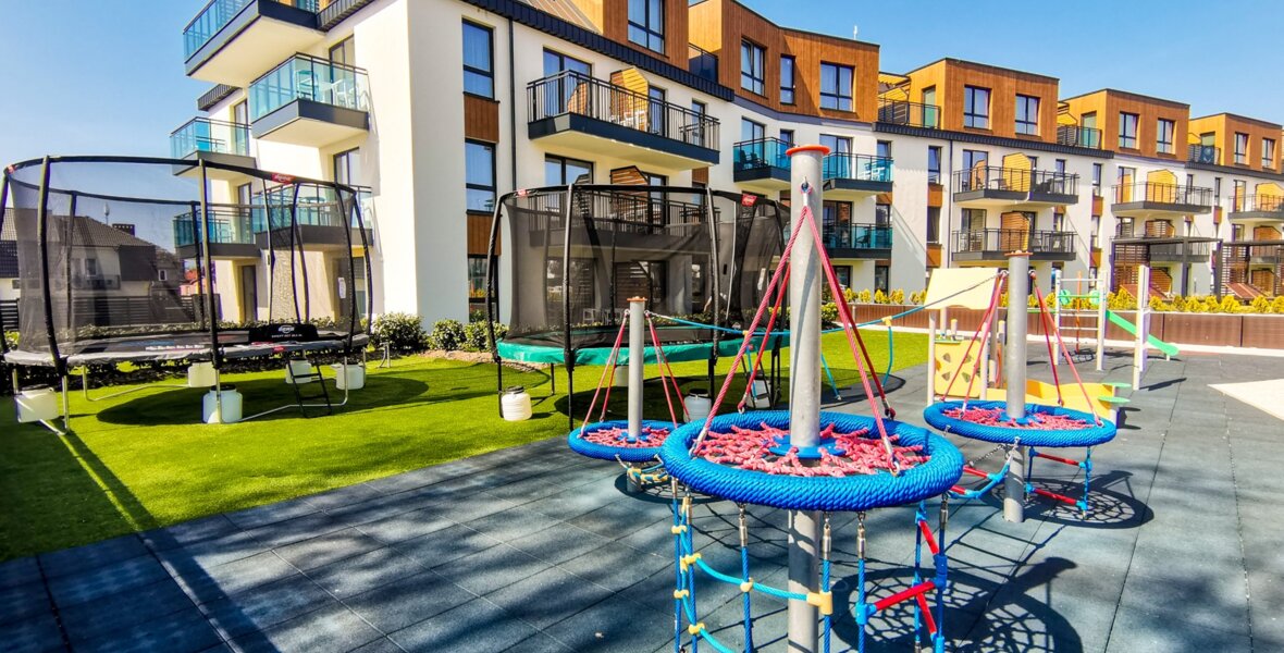 Hüpfburg, Schaukeln, Sandkasten und Abendunterhaltung mit bequemen Liegestühlen, weichen Kissen und Musikveranstaltungen.