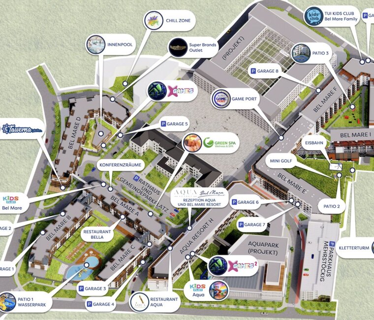 Der Tui Kids Club befindet sich im Gebäude F, das über den Innenhof 3 zugänglich ist.
