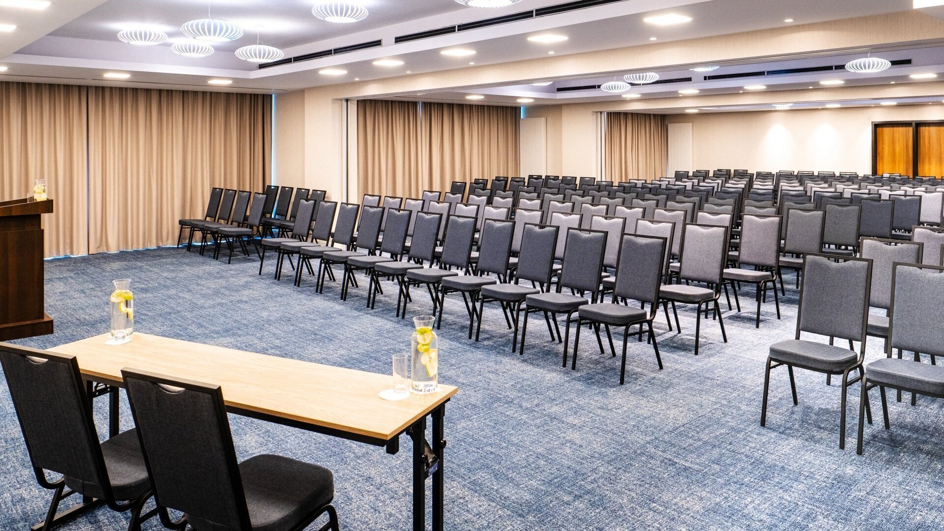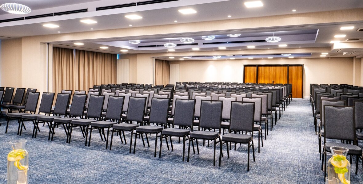 Sun conference room - with a total area of 233 sqm - with the possibility of dividing it into 3 smaller rooms, allows us to adapt the capacity to meet the client's needs.