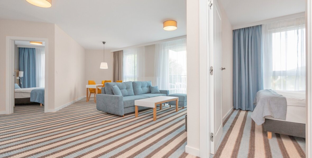 W skład resortu wchodzą budynki: BEL MARE I, BEL MARE II, BEL MARE III (Aqua), AQUA RESORT oraz od lipca 2023 BEL MARE V. Do Państwa dyspozycji oddajemy ponad 700 panoramicznych apartamentów typu Double, Suite, Suite Lux, Suite Premium, 2Apart, 3Apart oraz Aqua Double i Aqua Suite oraz w pełni klimatyzowane pokoje w AQUA RESORT. Kameralna zabudowa obiektu zapewnia idealny wypoczynek i relaks o każdej porze roku.