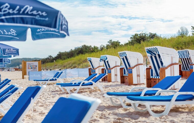 Bel Mare Resort posiada również rekreacyjną strefę na plaży oddaloną zaledwie 450 m od obiektu. Za niewielką opłatą dostępne są leżaki i kosze plażowe. Strefa leżakowa znajduje się przy zejściu "F" oraz "G". Punkt czynny jest codziennie od godziny 09:00 do godziny 18:00 ( czerwiec- sierpień).